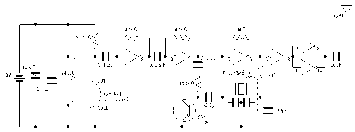 件のはた迷惑な(?)FMワイヤレスマイク、こんな回路で落ち着きました。